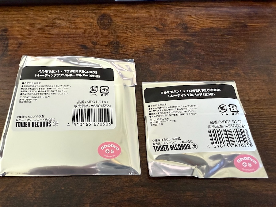 ブラインド商品はトレーディングアクリルキーホルダーとトレーディング缶バッジの2商品です。