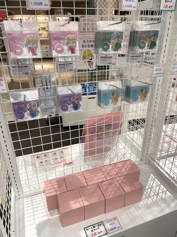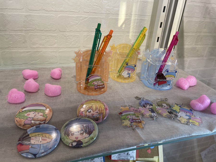 レジ横のショーケースで今回のいろんなグッズがディスプレイされていました。