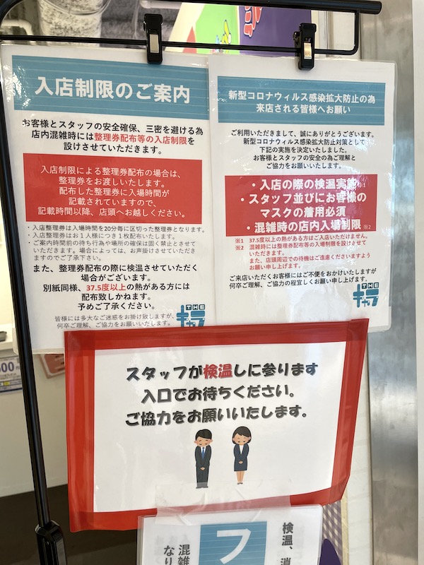 品切れの商品があると、お店の前でこのような形で掲示されるようです。(3月21日の時点では品切れなしでした)