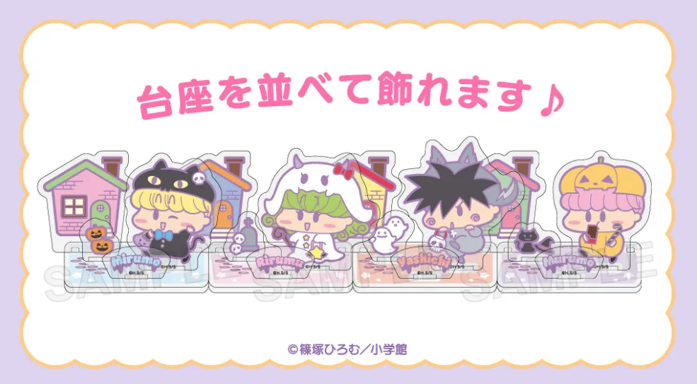 アクリルスタンドは以下のように台座を並べて飾ることも可能です(ただし4種類全部集めるのはすごく大変そう^^;)