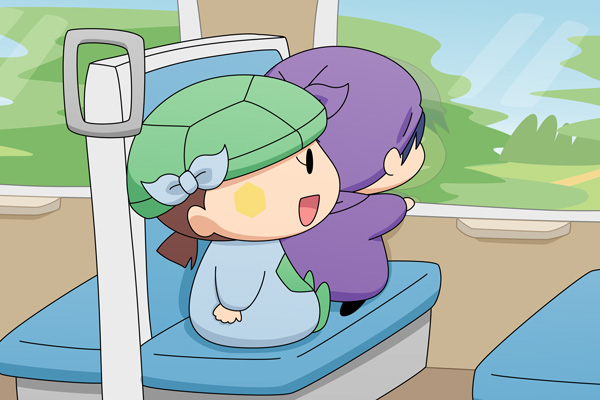 サスケが窓側の席に座った後、カメリはサスケの横に座りました。